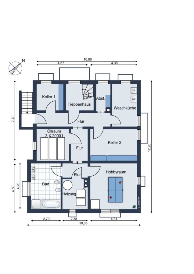 Das Haus ist komplett unterkellert und verfügt über einen Außenabgang direkt in den Keller.