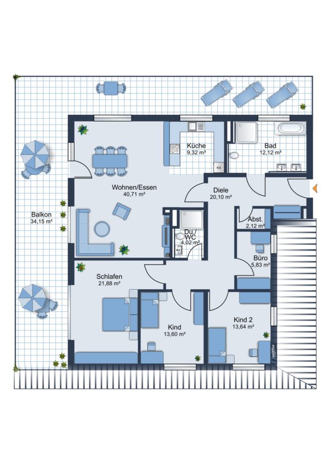 Die Wohnung verfügt über eine Wohnfläche von 176 m² und eine Dachterrasse auf der sie die Sonne genießen und den Blick in die Ferne schweifen lassen können.